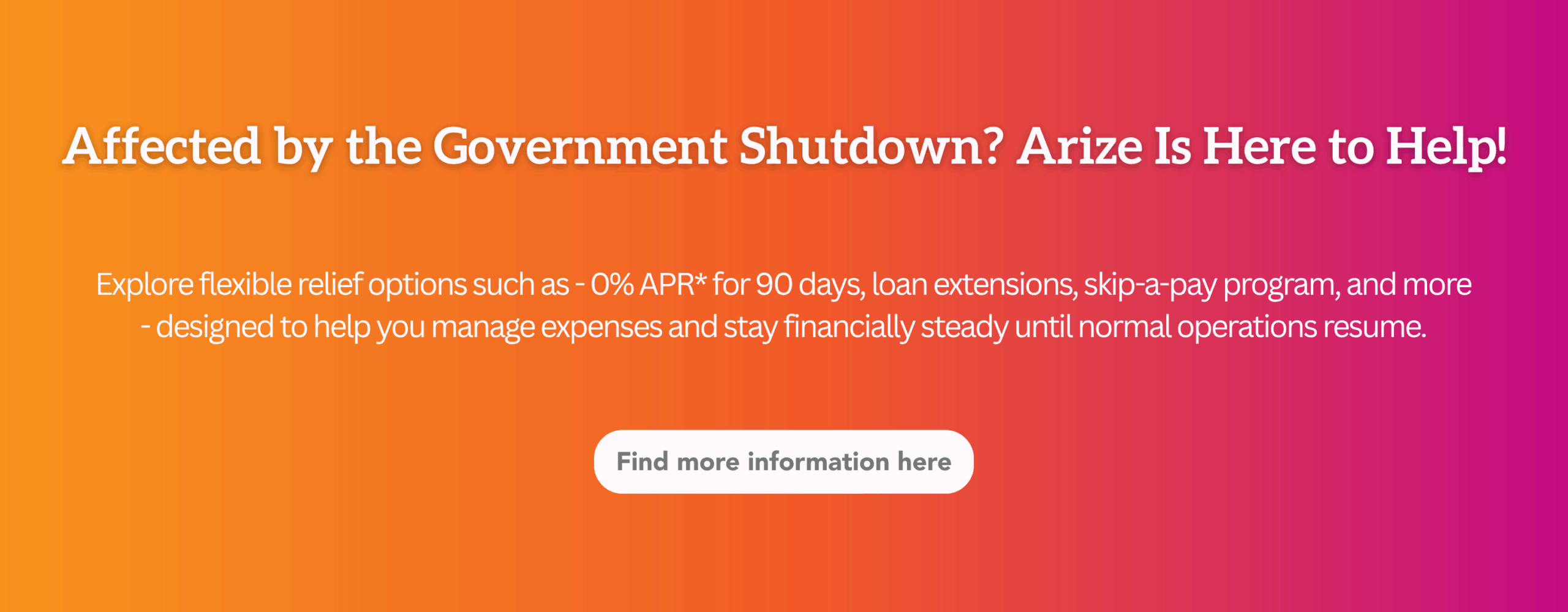 Arize is dedicated to providing financial solutions to everyday challenges and improving our member’s and communities’ financial well-being.